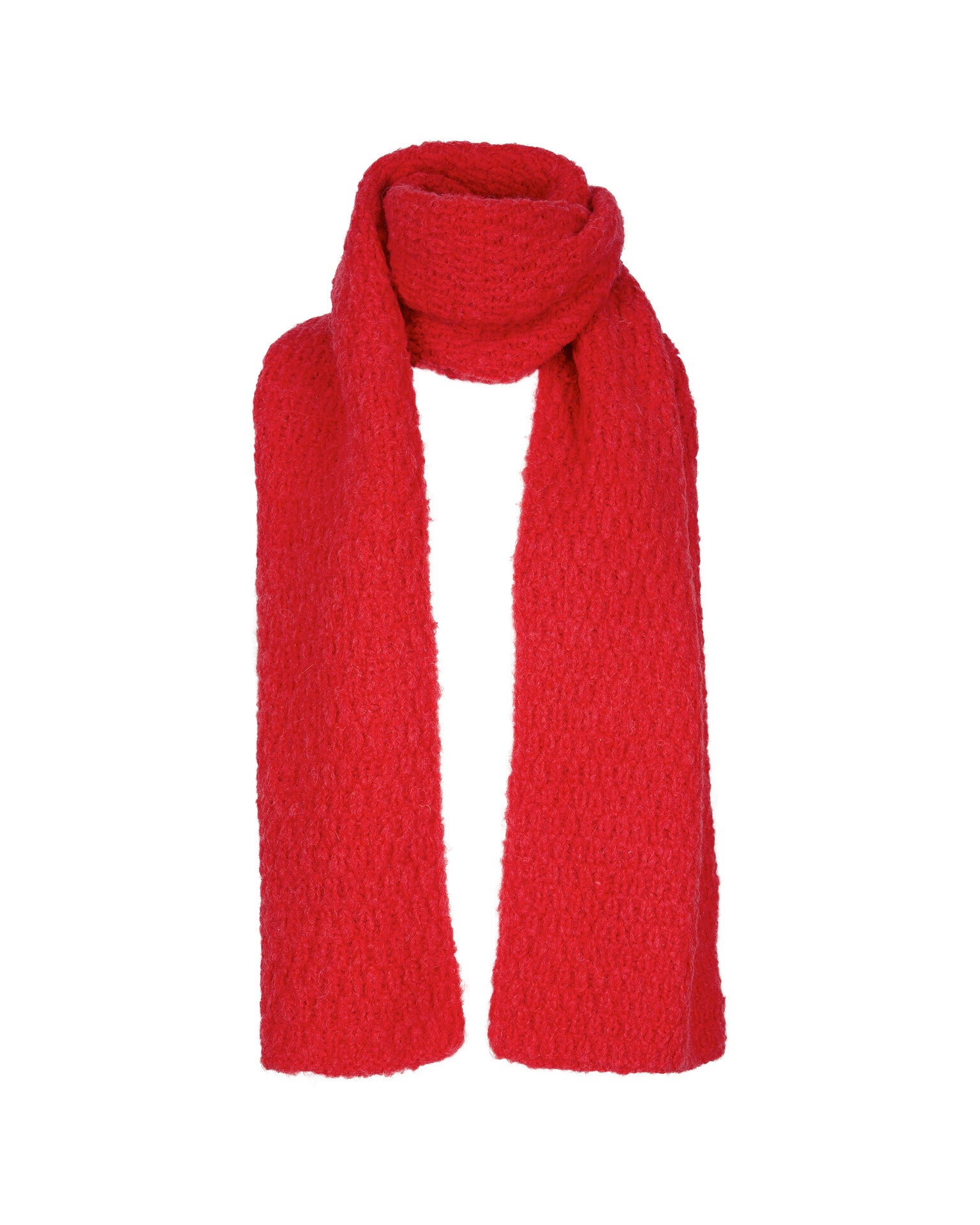 Deze heerlijke sjaal van INTI Knitwear heeft een mooi ingebreid patroon. De kleur is vurig rood en geeft warmte aan elke winterse dag!