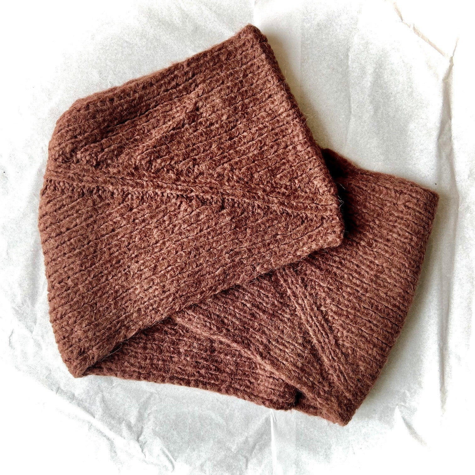 Deze heerlijke sjaal van INTI Knitwear heeft een mooi ingebreid zig-zag patroon. De kleur is gemeleerd bruin.
