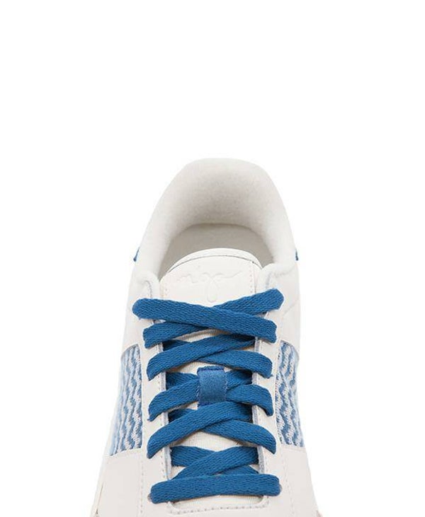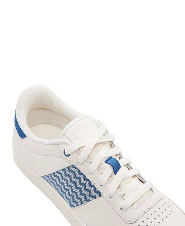 Deze leren sneaker van N'Go is een stoere schoen en past door zijn blauwe details perfect onder een jeans. De sneakers worden gemaakt met handgeweven matrialen en etnische prints.