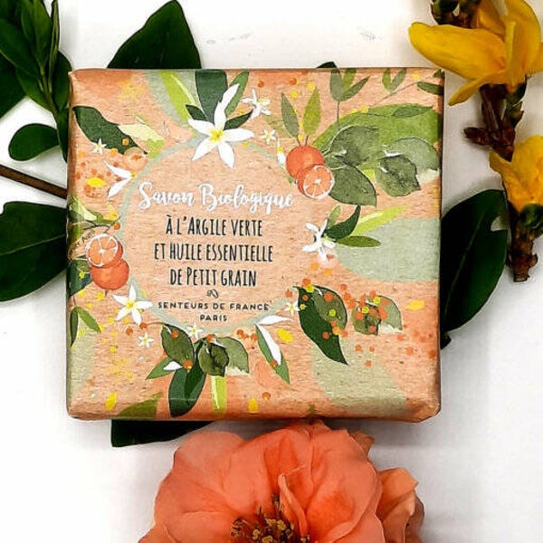 Deze zeep wordt gemaakt op basis van biologische ingrediënten en is geparfumeerd met essentiële Petitgrain olie. Petitgrain is een 'bittere' sinaasappel en staat bekend om zijn zuiverende kracht. De geur is bloemig, fris en hout-achtig. Er is groene klei toegevoegd om de huid niet te laten uitdrogen. Blok van 100gram.