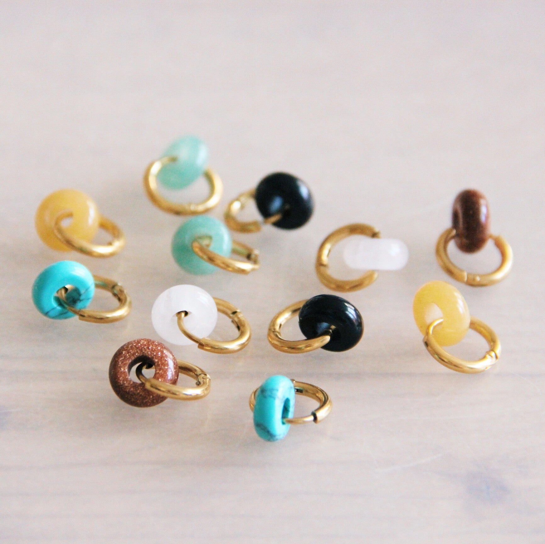 De oorbellen worden gemaakt van RVS (hypoallergeen) met natuursteen en verkleuren niet! Het materiaal is sterk maar licht in gewicht. Het natuursteen kan in kleur en schakering enigszins afwijken van de foto. Doorsnede oorbel 12mm