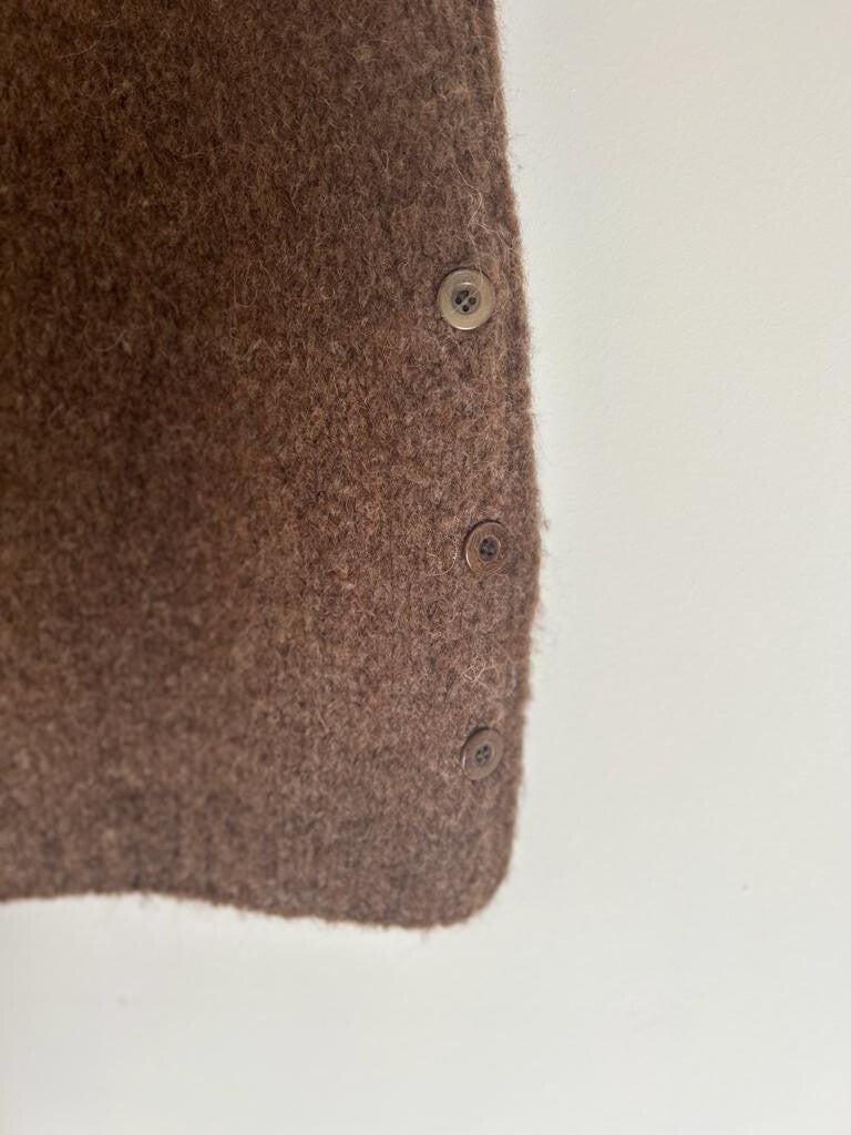 Deze mouwloze top in middenbruine teint is perfect om te combineren met een blouse. Heerlijk warm in de winter! De knopen in de zijkant geven de mogelijkheid om de blouse in meer of mindere mate te laten zien. Eventueel ook in de zomer te dragen met een lekker hemdje eronder!